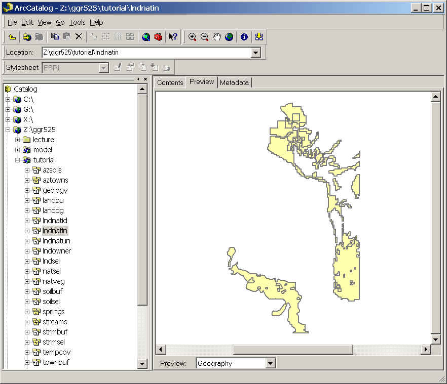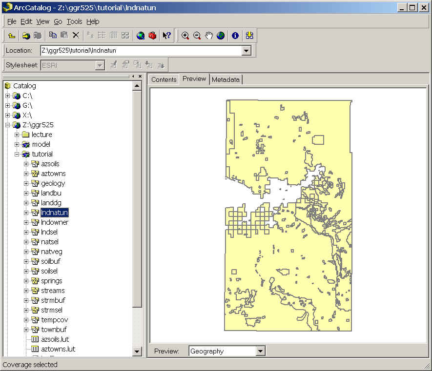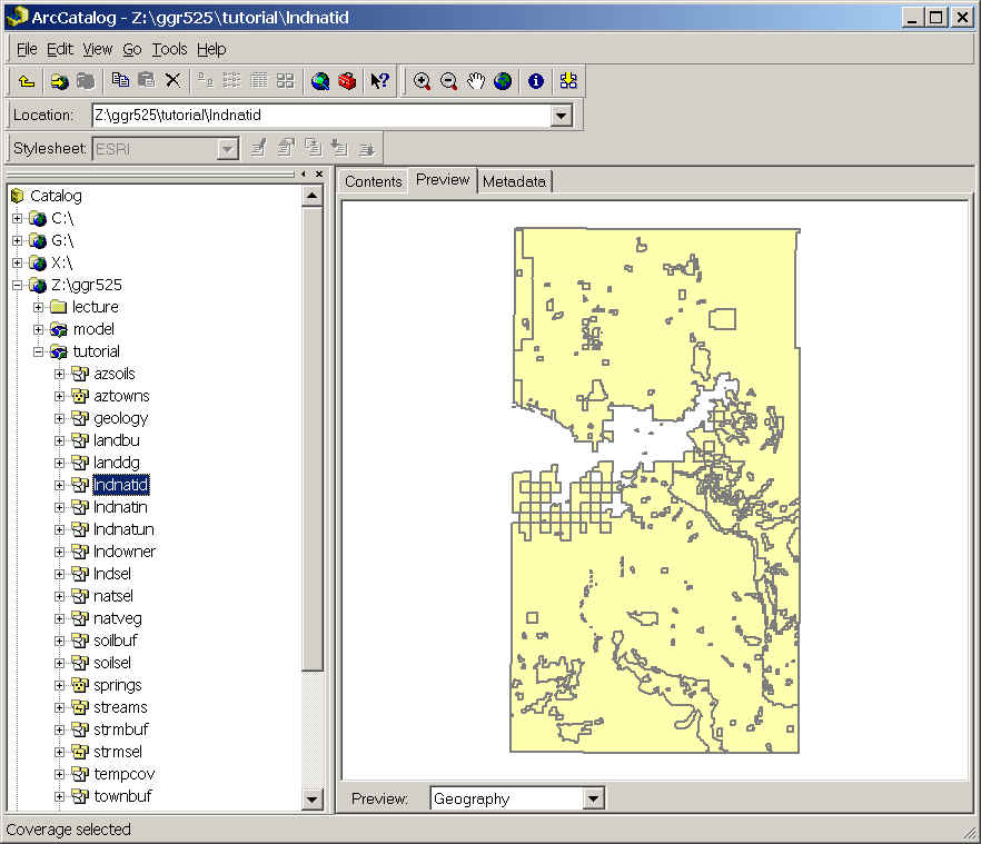 Step 9: You will not need these particular coverages again, so you can delete all coverages related to this exercise in ArcCatalog. You do not have to do this, but you will need disk space for your MODEL.