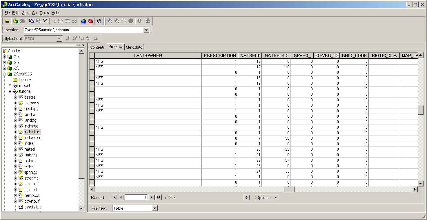 Step 2: Copy the lndowner and natveg coverages from flag24/cover to your Z:\ workspace.