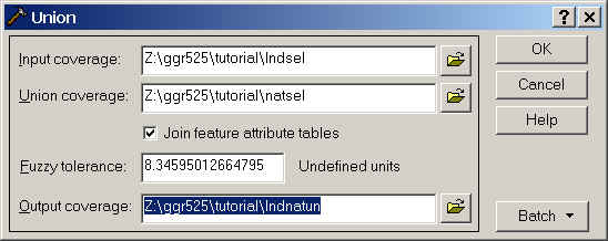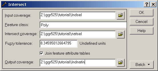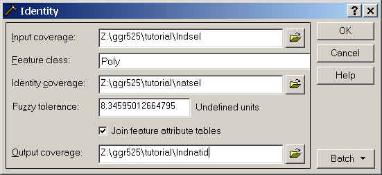 Step 4: Combine features of the input coverage (lndowner) with features of the overlay coverage (vegetation) so that the resulting coverage contains what is given in Criteria A.
